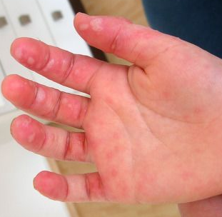 - 발진: 손, 발, 입안에 작은 물집이 생기며, 특히 손바닥과 발바닥에 많이 나타나요.