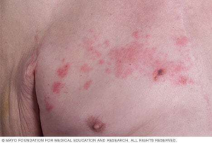 - 통증 후 며칠 간 시작 되는 붉은 발진